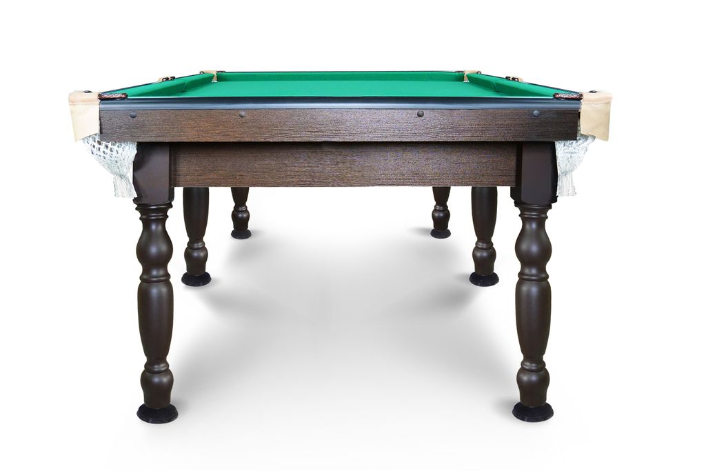 Стол поставляется в собранном виде. Комплектация возможна лузами для русской пирамиды или пула.