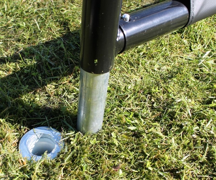 Установить ворота можно на любой подходящей поверхности. Ворота поставляются в стандартной комплектации с набором запатентованных креплений, который состоит из наземных анкеров и анкерных труб. Такие крепления не только выдерживают сильные удары мячом о штангу, но и позволяют легко демонтировать ворота в нужный момент.