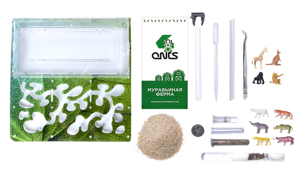 Комплект муравьиной фермы с муравьями Messor Structor (степные жнецы) Матка, 10-30 рабочих особей + корм + антипобег + поилка + пинцет