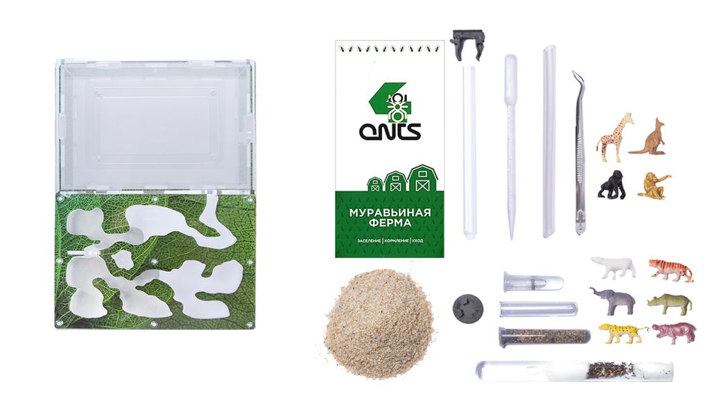 Комплект муравьиной фермы с муравьями Messor Structor (степные жнецы) Матка, 10-30 рабочих особей + корм + антипобег + поилка + пинцет