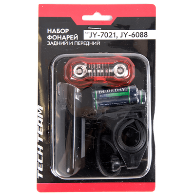 Набор фонарей: задний и передний. Передний фонарь JY-7021 2 белых светодиодов 3 режима работы, под батарейки АААх2. Задний фонарь JY-6088, 5 красных светодиодов 3 режима работы, под батарейки АААх2