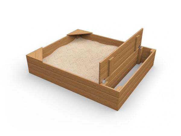 В конструкцию добавлена лавочка-сундук. Можно присесть, лепить куличики, а потом сложить туда игрушки.