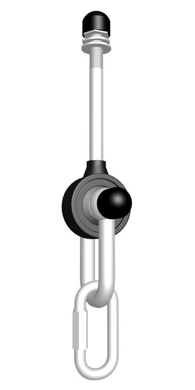 Подвесы для качелей изготовлены из круглой трубы D... мм, толщиной 3 мм . В каждый подвес установлено по 2 подшипника FAG 60....... Все торцы, болты, гайки заглушены пластиковыми заглушками отличного качества. Использующиеся болты и гайки оцинкованы и соответствуют требованиям ГОСТ. Крепится, подвес к раме, при помощи болта М12*85 мм.