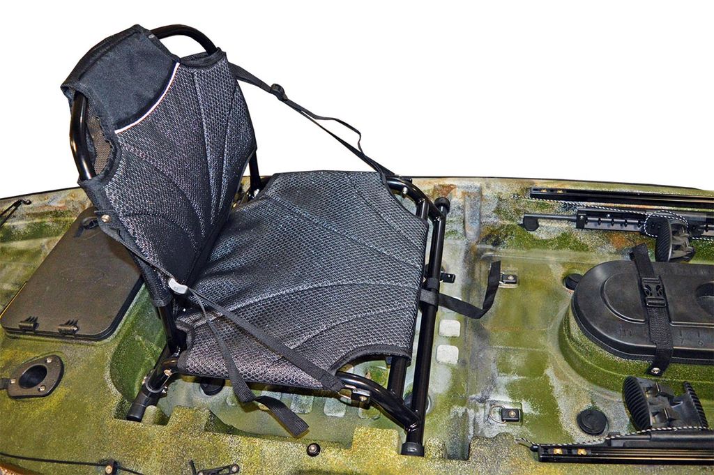 Каяк "Таймень Мини" оборудован комфортным сиденьем, в котором можно с удобством провести несколько часов. Положение спинки сиденья регулируется стропами, также можно выбрать одно из двух положений сиденья в пазах на корпусе каяка.