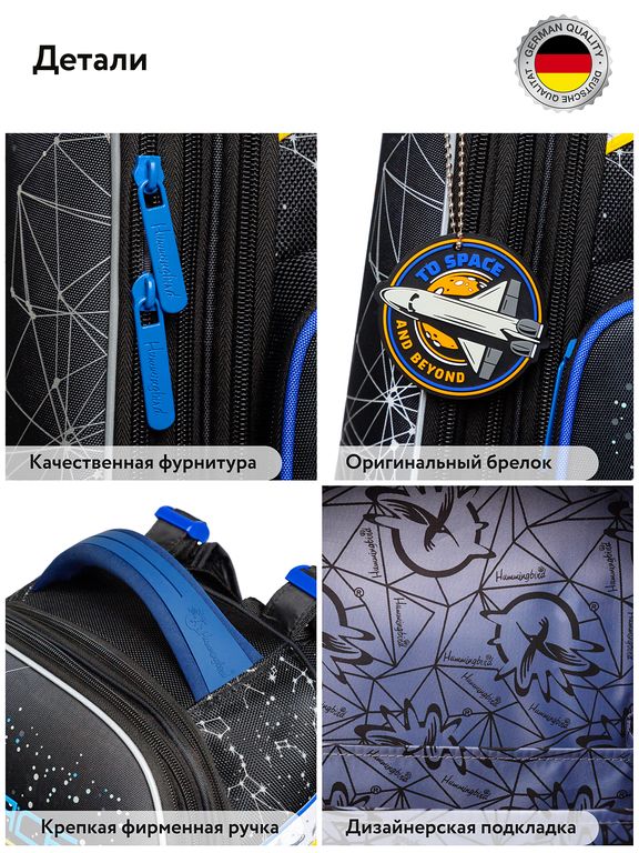 Ранец школьный для мальчика 1-6 классов с ортопедической спинкой от известной фирмы Hummingbird. Под этим брендом выпускается только высококачественная, проверенная временем продукция школьных ранцев и рюкзаков.
