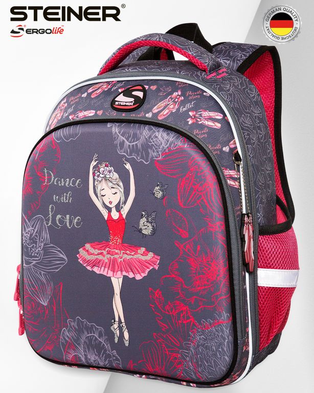 Рюкзак школьный для девочки 1-4 классов с ортопедической спинкой от известной фирмы Steiner. Под этим брендом выпускается только высококачественная, проверенная временем продукция школьных ранцев и рюкзаков.