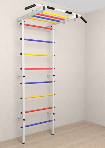 Стойки шведской стенки Sv Pro Рукоход изготовлены из профильной трубы 40х40х2мм. Ступени изготовлены из круглой, стальной трубы, покрытой резиной (не скользят, не натирают мозоли, не прокручиваются, не имеют запаха, приятны на ощупь). Устанавливается к стене при помощи 6 кронштейнов. Турник рукоход в шведской стенке Sv Pro изготовлен из профильной трубы 60х40х2мм и круглой трубы D30 мм. На перекладину, в местах хватов, одеты резиновые ручки.