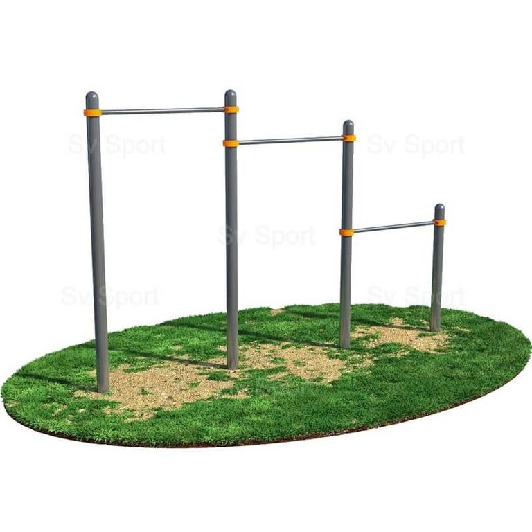 - Трёхуровневый турник с регулировкой высоты перекладин.