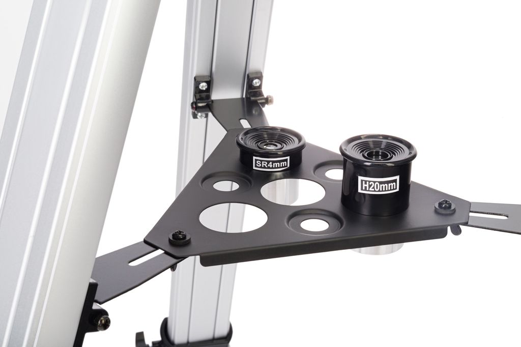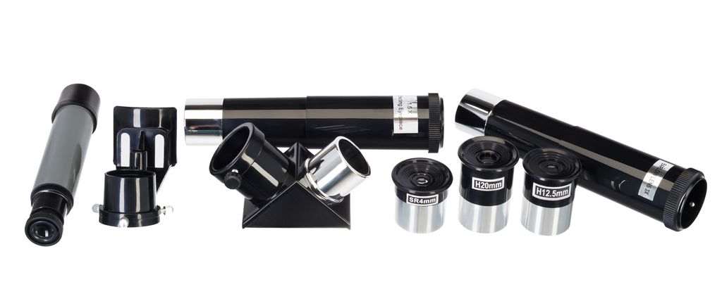 В оптической схеме используются стеклянные линзы с антибликовым покрытием. Это положительно влияет на качество передаваемой картинки, делает ее более четкой и ясной. Телескоп укомплектован множеством оптических аксессуаров, что позволяет использовать при наблюдениях разные увеличения. Более того, благодаря фокусеру 1,25 дюйма на телескоп можно устанавливать дополнительные принадлежности с соответствующим посадочным диаметром. Их можно приобрести отдельно, если требуется решить какие-то специфические задачи.