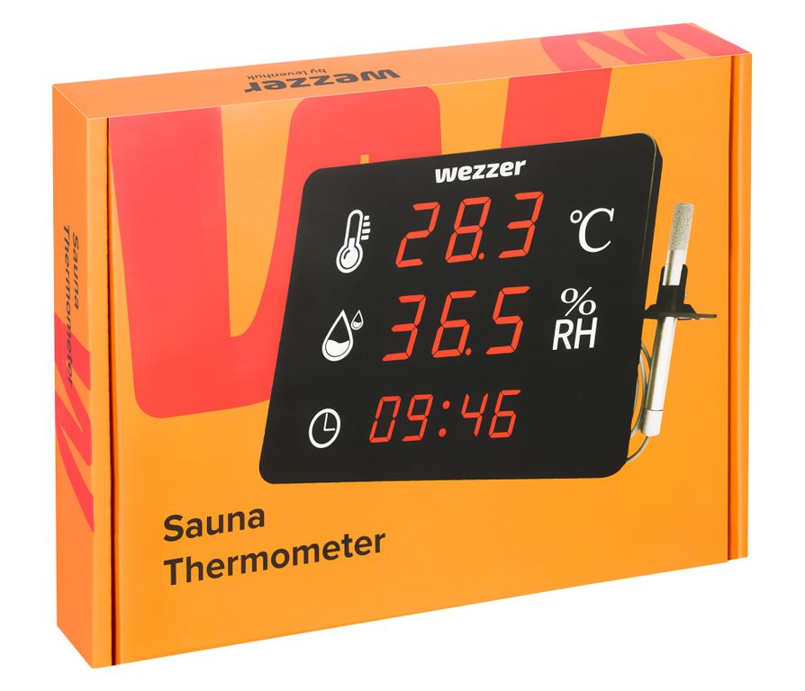 Функции: термометр, гигрометр, часы. С выносным термогигрощупом на кабеле длиной 3 метра