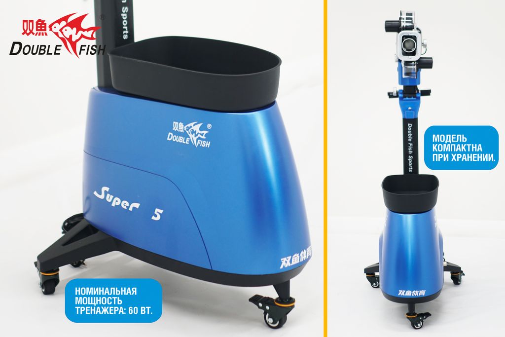 Double Fish SUPER 5 - это профессиональный робот, отличающийся высоким качеством и рядом функций, которые делают его отличным инструментом для ежедневных тренировок и улучшения навыков как начинающих игроков, так и профессиональных спортсменов по настольному теннису.