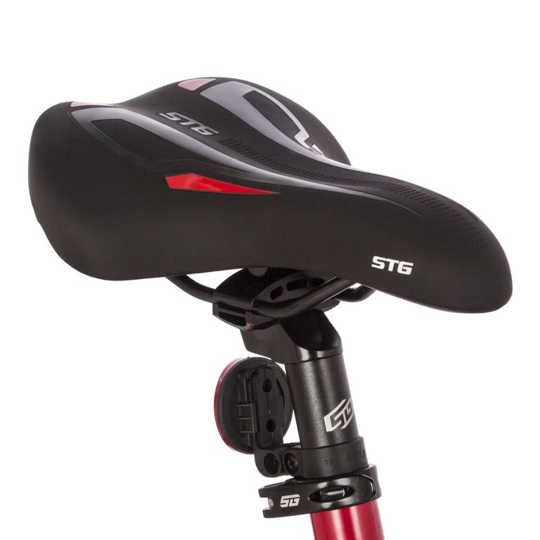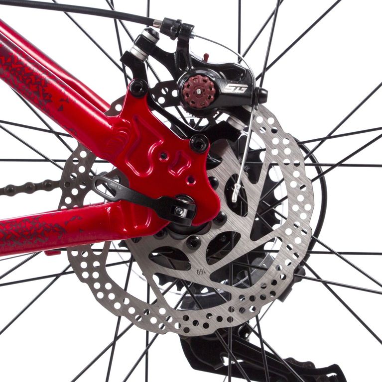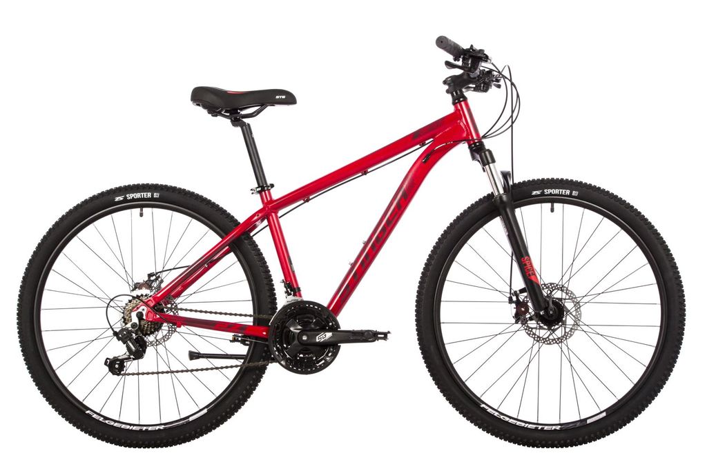 Горный велосипед на 27,5" колесах. Легкая рама из алюминиевого сплава. Пружинно-эластомерная амортизационная вилка: STG Spice 80/100mm. Манетки Shimano Tourney EF41 3x7 скоростей. Задний переключатель Shimano Tourney TY200. Дисковые механические тормоза STG 910. Диаметр роторов: 160/160 мм. Трещотка Shimano TZ500, 7ск., 14-28T. Цепь TAYA TS-80. Система (шатуны) STG By Wheeltop 170mm 24/34/42T. Каретка Feimin B902. Втулки STG Spice By Joytech. Тип крепления колес: эксцентрики. Обода Felgebeiter VB-18 двойные. Покрышки ZX Sporter 2.0" 22TPI Casing.